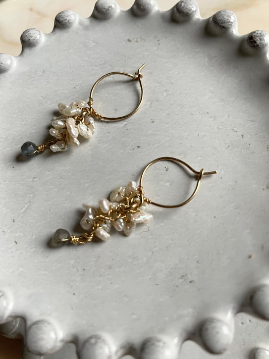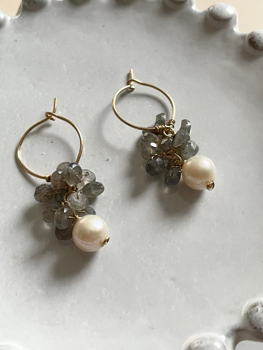 Gemstone Cluster Earring Pearl & Labradorite