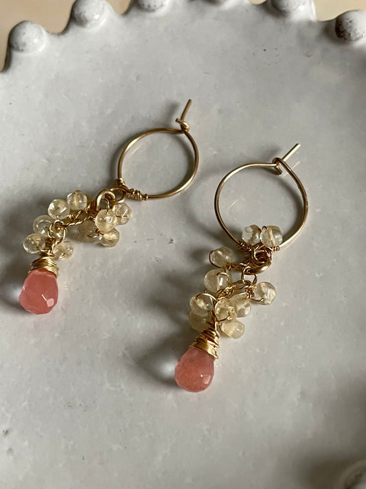 Gemstone Cluster Earring Cherry Quartz