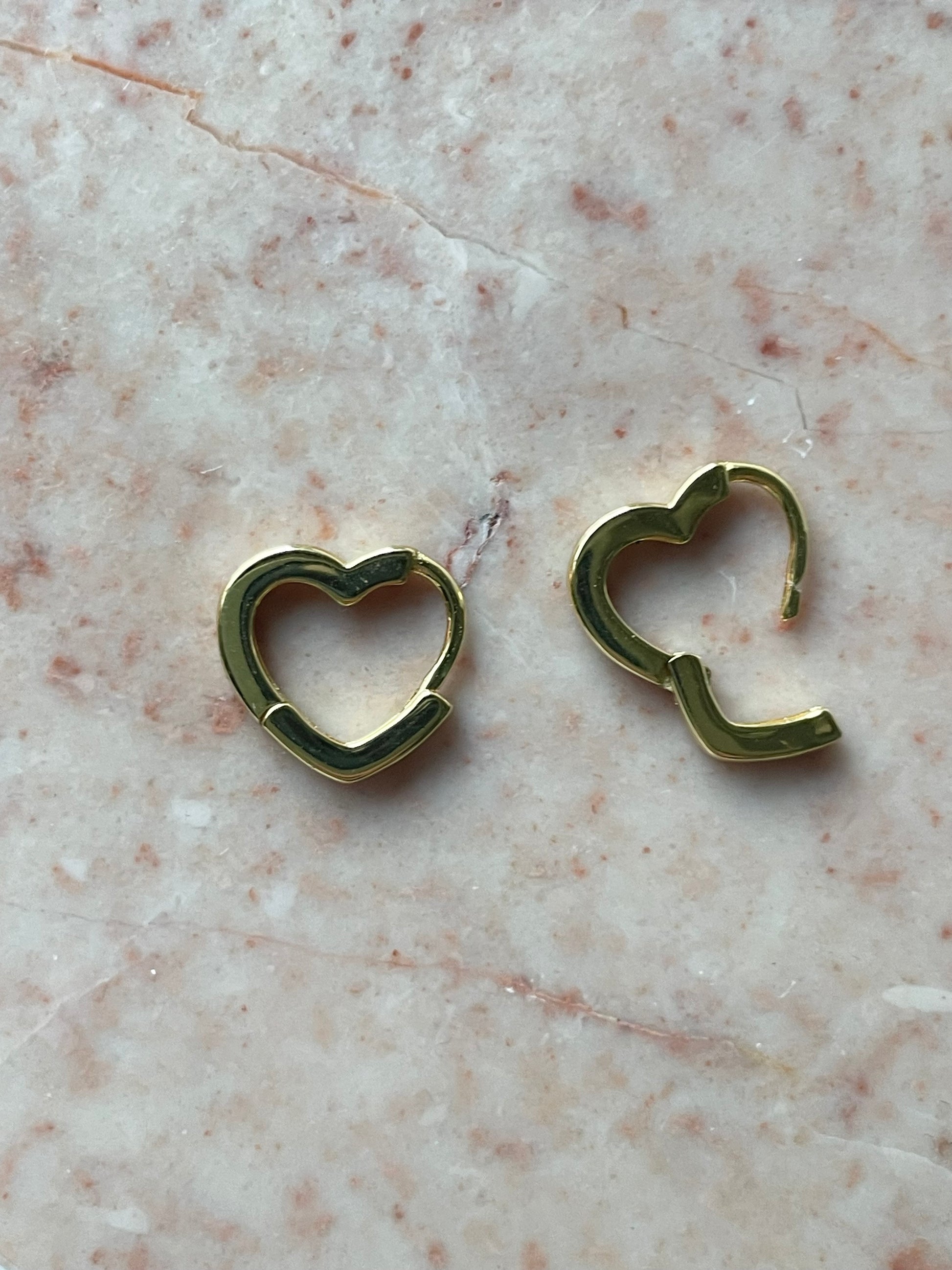 Heart-Shaped gold plated Silver Ear Hoop. Crafted from sterling silver with care, this understated hoop features a delightful heart shape, adding a touch of elegance to any look. Material: Gold plated 925 sterling silver. Height: 12 mm