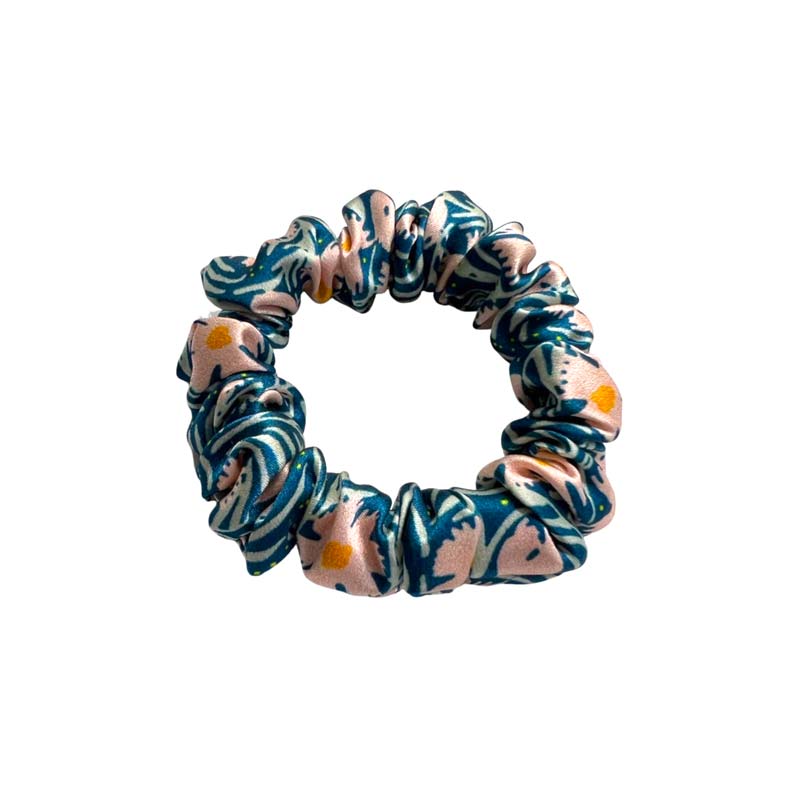 Silk scrunchie in Trésorie’s Lilly print. Width 2 cm. scrunchie. A hair scrunchie made of pure silk offers numerous benefits. Its smooth texture is gentle on hair, reducing tangling and breakage while preventing creases. Hypoallergenic and luxurious, silk scrunchies provide a comfortable hold without sacrificing style, making them an ideal choice for healthy and stylish hair.