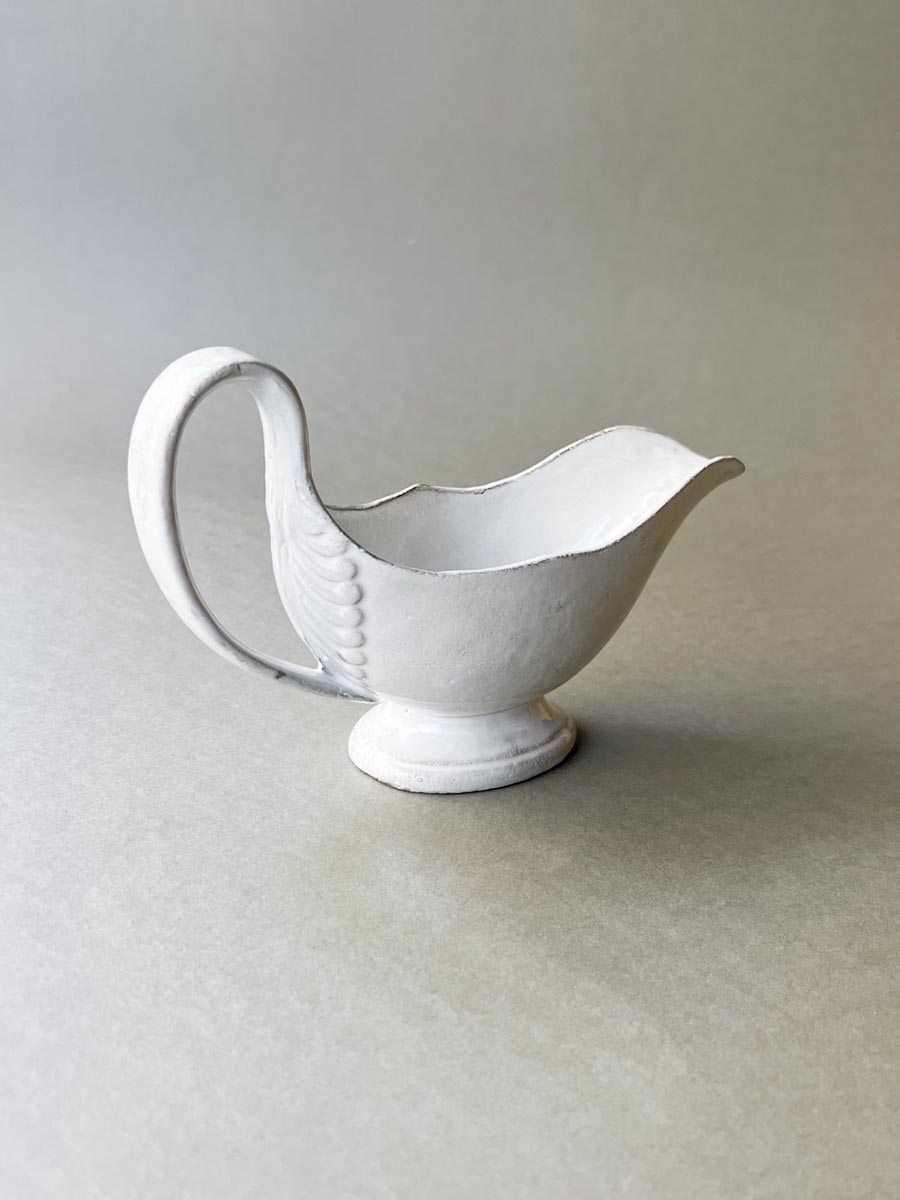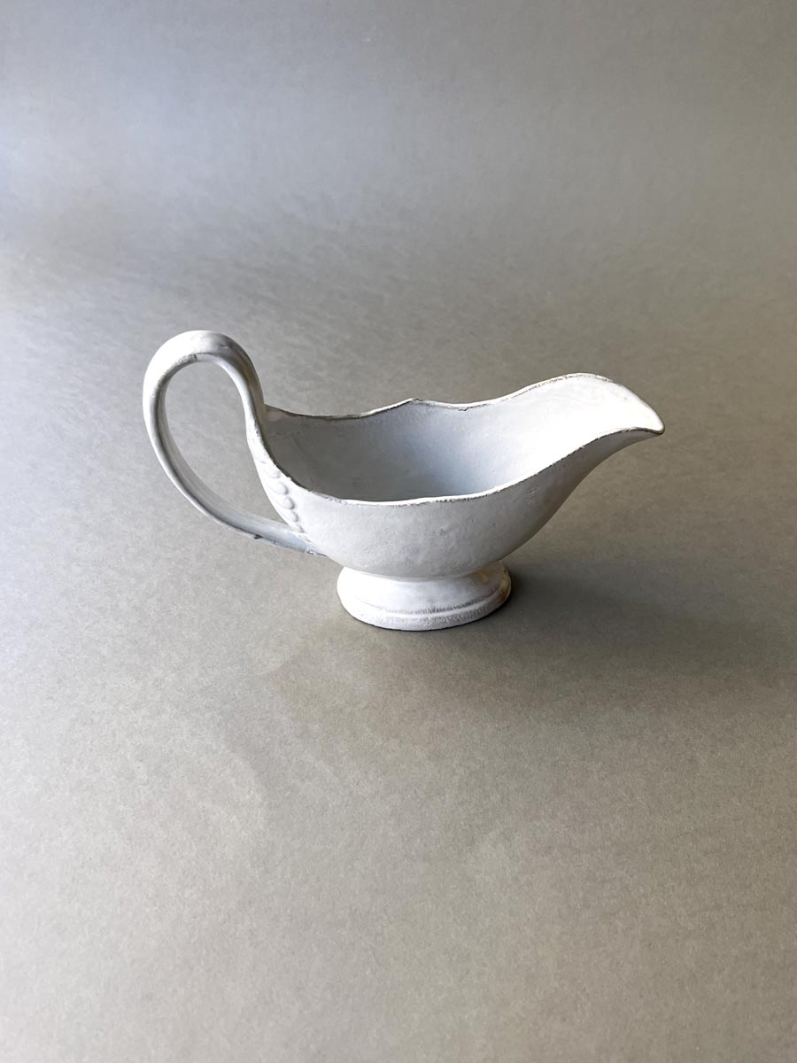 Timeless serving piece, a gravy boat in white ceramics. Sobre sauce boat dimensions: 210 c 70 x 135 mm.