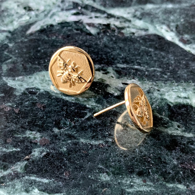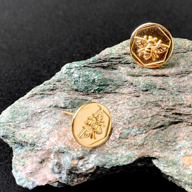 Make a statement with our Beehive Earring Studs, featuring a unique hexagon shape and an intricately embossed bee motif at the center. Crafted from high-quality 925 sterling silver and plated with gold, these earrings combine contemporary design with a touch of nature-inspired elegance. Hypoallergenic and perfect for sensitive skin, they are an exquisite addition to any jewelry collection.Care Instructions: To maintain the gold plating, avoid contact with water, perfumes, and harsh chemicals. Clean gently with a soft, dry cloth and store in a jewelry box or pouch to prevent scratches and preserve the intricate details