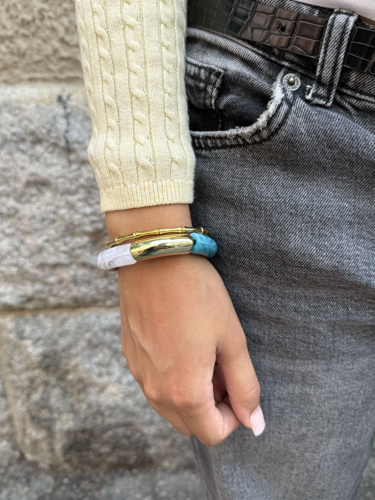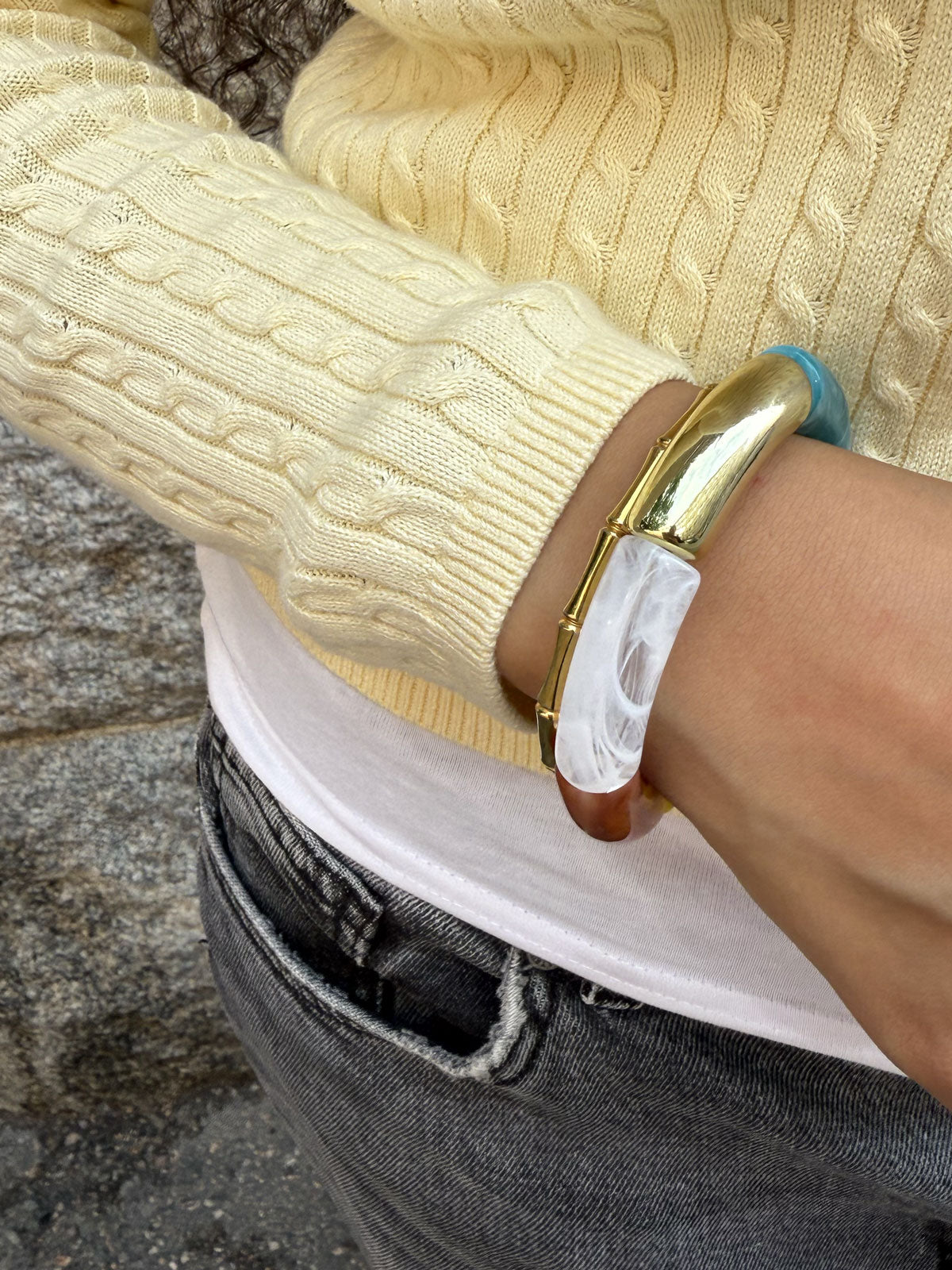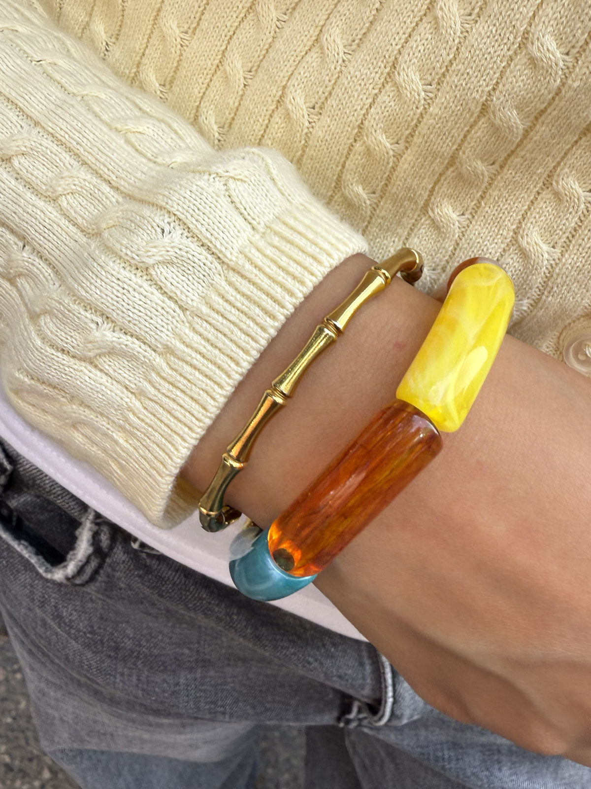 A stylish and fun acrylic bracelet to wear on its own or as a color combination.