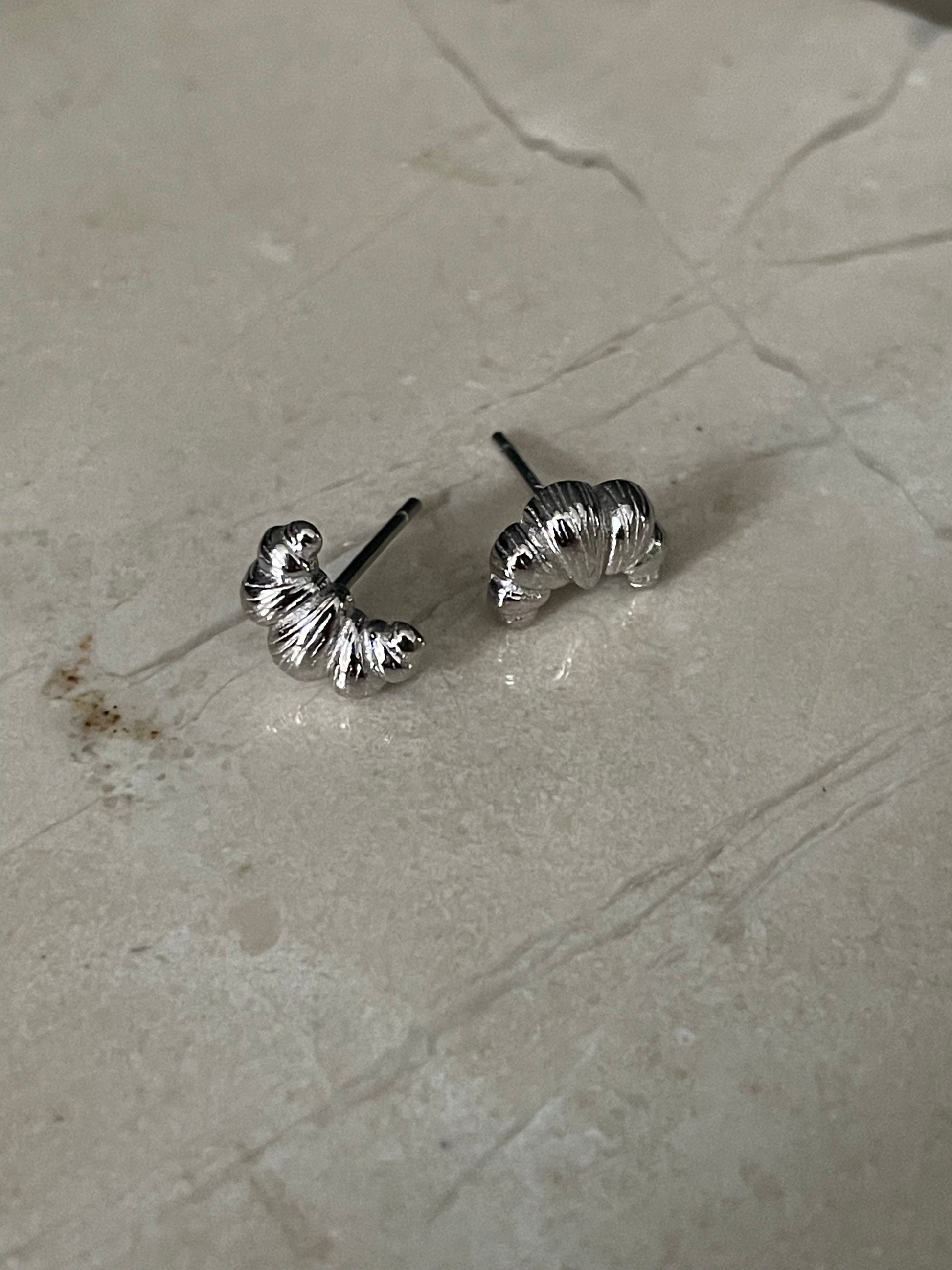 Sterling stud earrings inspired by the soft curves of a croissant, with a ridged, sculptural texture that catches the light. The Croissant Studs are playful, elegant, and full of personality — a golden twist on everyday earrings.