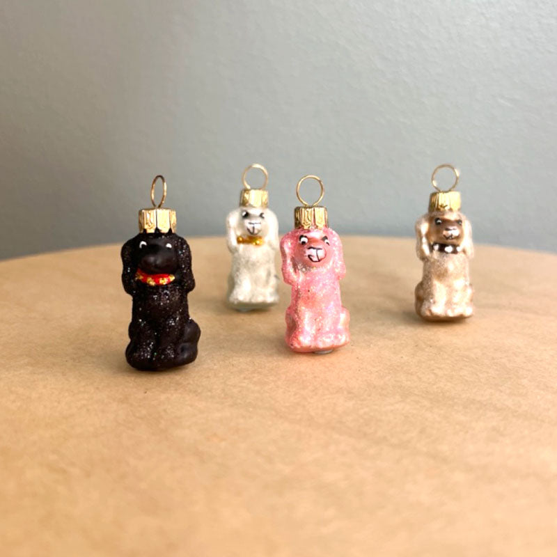 Charming mouth‑blown glass poodle ornament with textured coat effect. Hand‑painted in the EU.