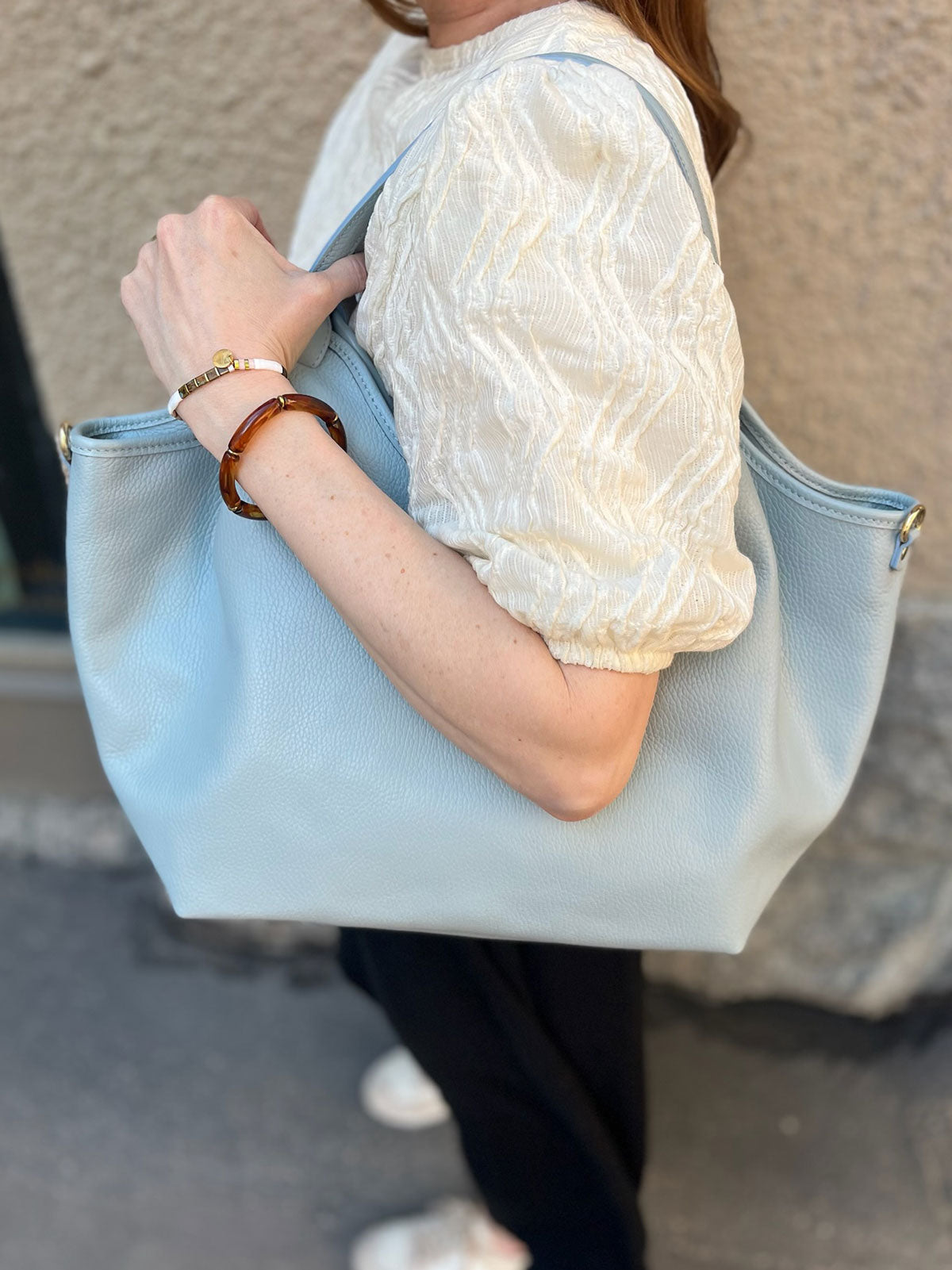 This sophisticated Italian-made leather tote bag combines timeless style with practical functionality. Crafted from premium leather, it offers ample space and smart organization for daily use.