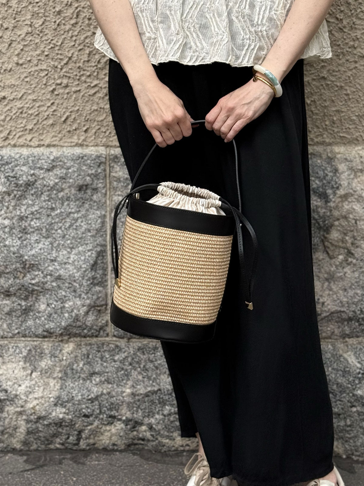 Add a touch of effortless style to your look with our Raffia and Leather Bucket Bag, where natural materials meet a fresh, contemporary design. Handcrafted in Italy, this bag combines natural raffia and rich leather for a look that’s both sophisticated and relaxed.