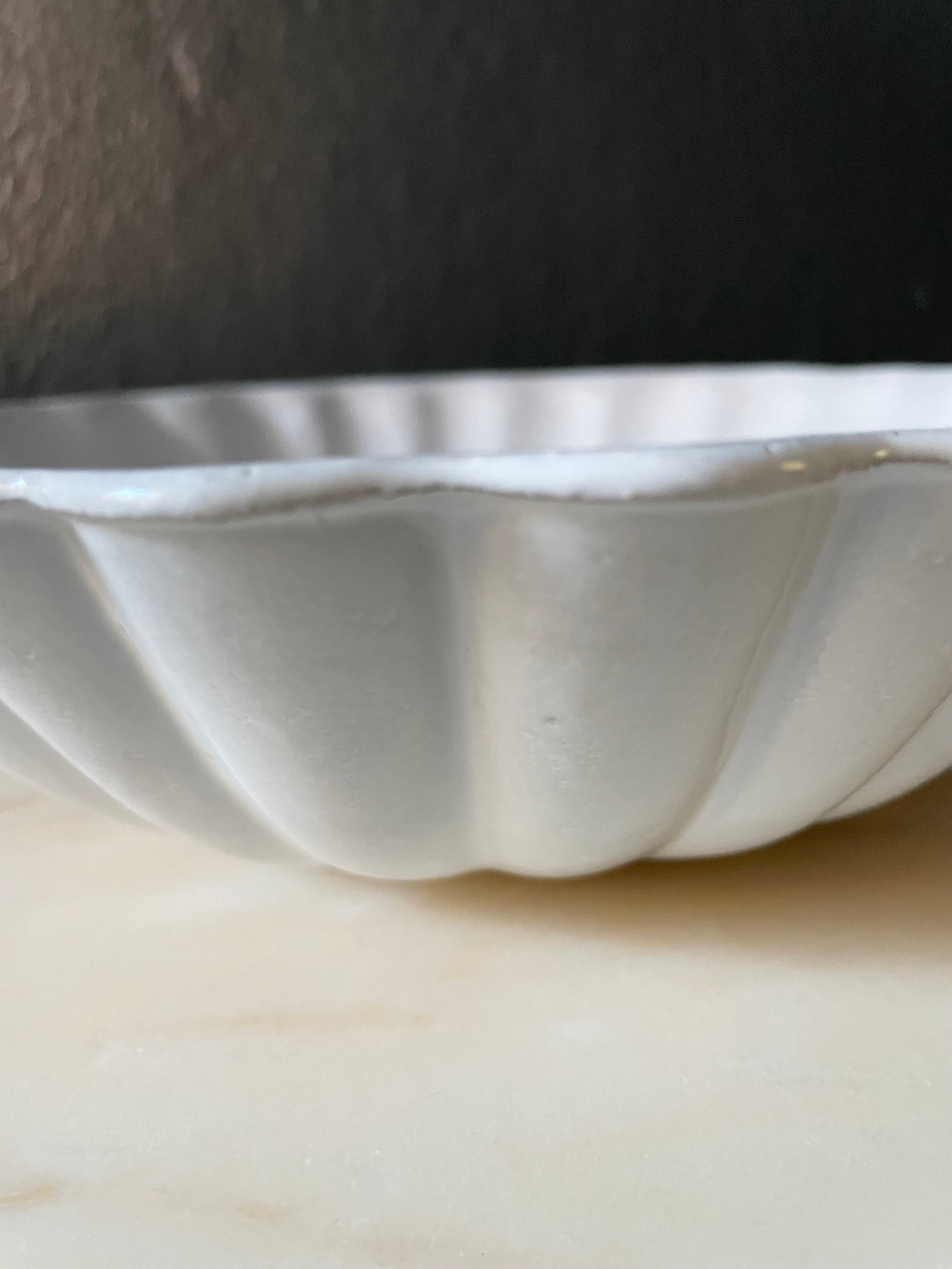 Astier de Villatte was founded in 1996 by Ivan Pericoli and Benoît Astier de Villatte. Each of their ceramics is handmade in Paris from black terra cotta clay with their signature glossy white glaze. Inspired by 18th and 19th-century designs, each piece is unique.