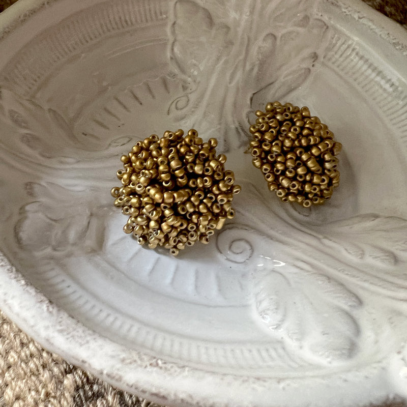 Joyful beaded earring. Dia 3 cm. Material: Glass beads + alloy